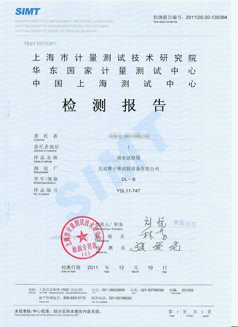 IPX1/IPX2滴水試驗箱檢測報告模板下載
